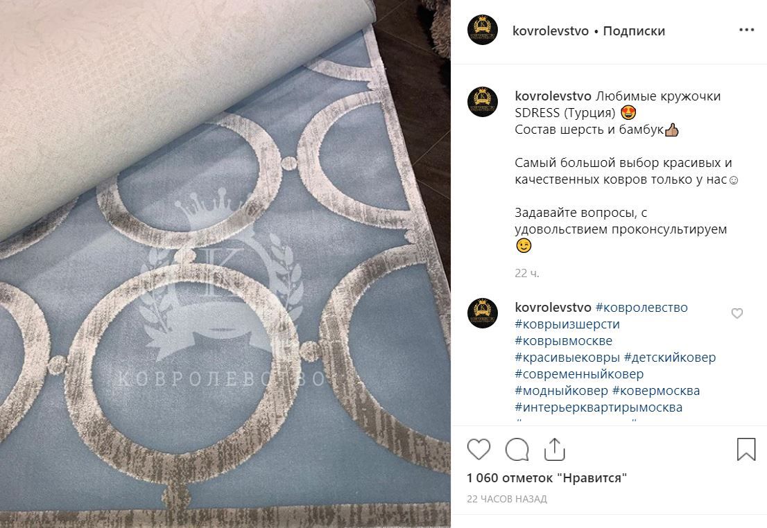 В сети инстаграм мы лично встречали ковровых продавцов с огромным числов подписчиков, которые совершенно открыто предоставляют нечестные данные по коврам, пишут в составах шелк-шерсть-бамбук, хотя на самом деле они состоят из полиэстера и полипропилена. В описании пишется, как вариант, «Турецкий ковер», чтобы вы не нашли такой нигде более по коллекции.